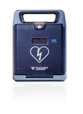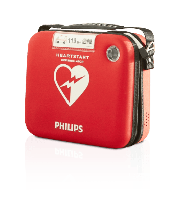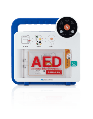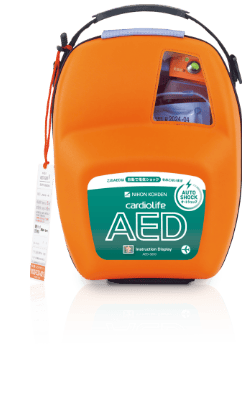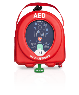 突然の心停止(心臓突然死)から命を救うための器械です。けいれんをおこした心臓に電気ショックを与えて、正常な状態に戻します。操作は音声ガイダンスにより指示され、電気ショックが必要かどうかもAEDが判断します。正常な心臓には電気ショックは与えられません。専門知識がない方でも安心してお使いいただけます。